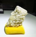 無数のカルサイト結晶がダンビュライトを覆いつくしています。単結晶としてもここまで大きいダンビュライトは通常見かけることはないでしょう。そして、その大きな単結晶に覆いかぶさるカルサイトも小さめなキラキラした結晶から約7cm程度の大きな結晶まであります。大変貴重な原石になります。