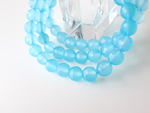 シーブルーカルセドニーは一般的に染色されたものですので、紫外線などによる退色もありますので予めご了承下さい。