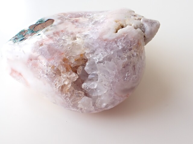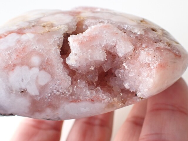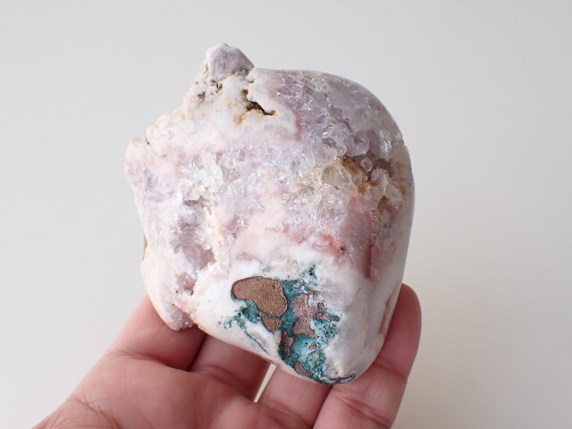 【商品詳細】 産地:ブラジル ピンクアメジスト (一部ポリッシュ) サイズ:約92.5mm×88mm×39.3mm 重量:347g ※サイズ・重量については多少前後する場合があります。 ※天然石の為、原石特有の凹凸、小傷、インクルージョン等ある場合がございます。