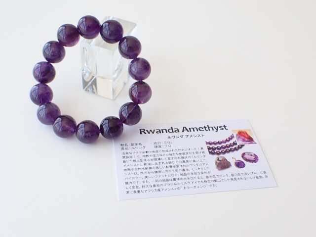 産地:ルワンダ産 アメジスト 約14mm×14粒 腕回り:約15.5cm