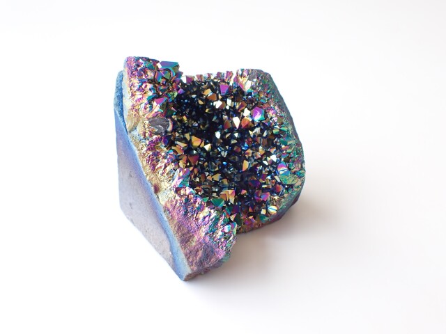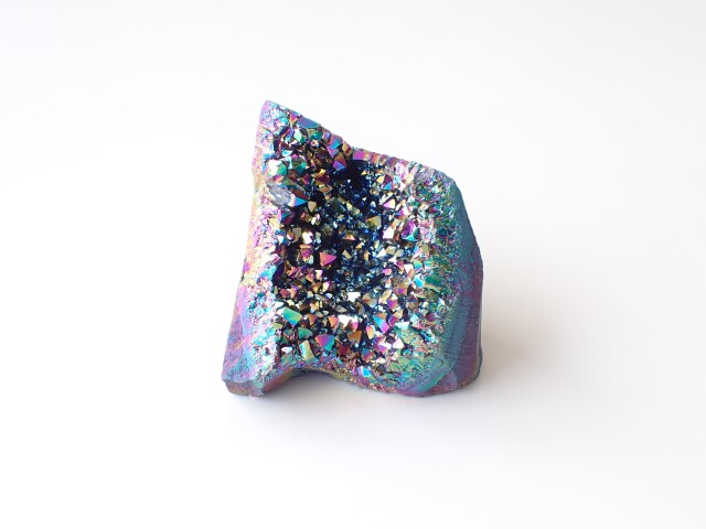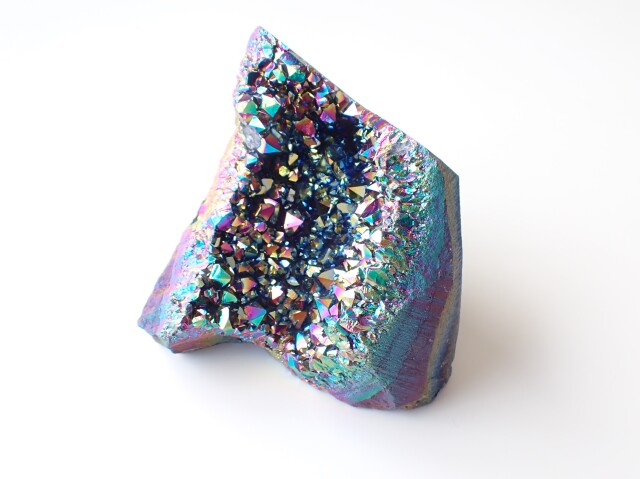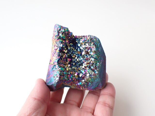 人工的に色を蒸着させたクリスタルですが七色に輝く色は大変綺麗で角度によって様々な色合いに変わっていきます。オーラ系の原石などは、欧米のヒーラーさんにも人気があり、アーカンソー産水晶のオーラ系原石なども有名です。ブラックアクアオーラは魔除けとしてもおすすめです。