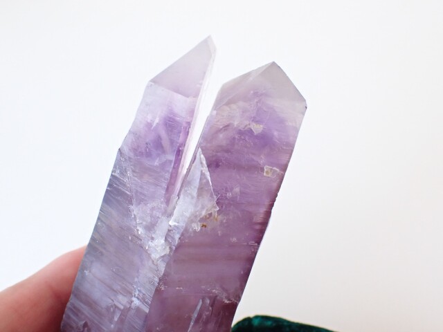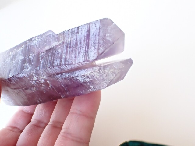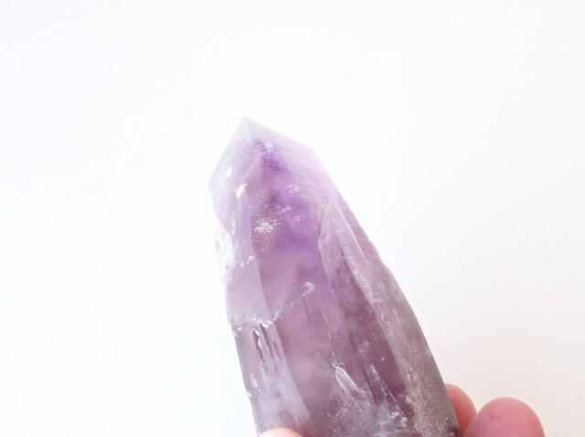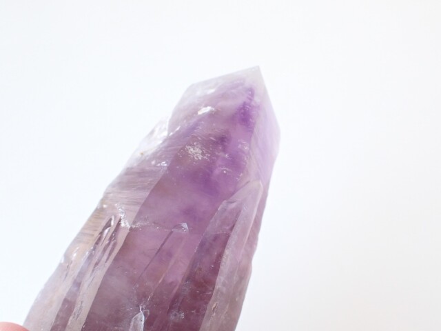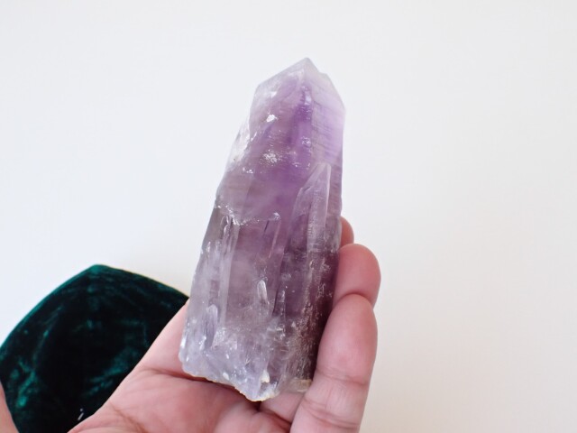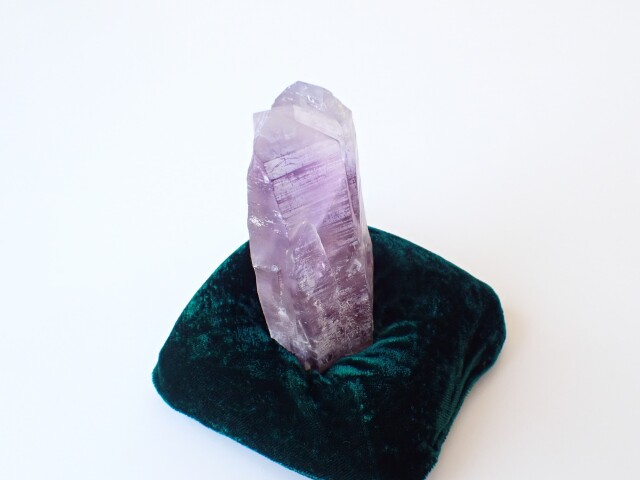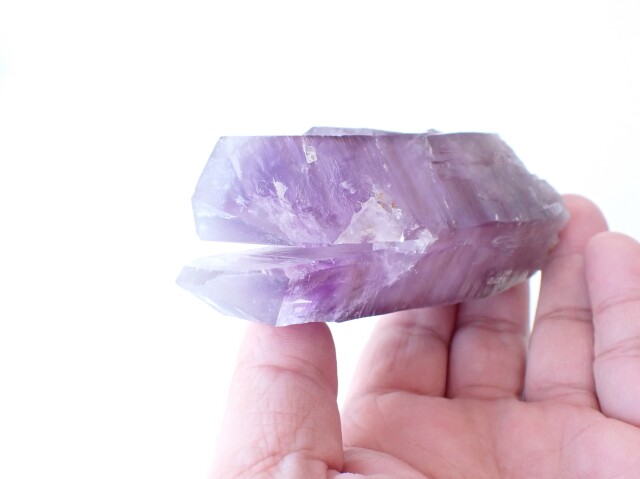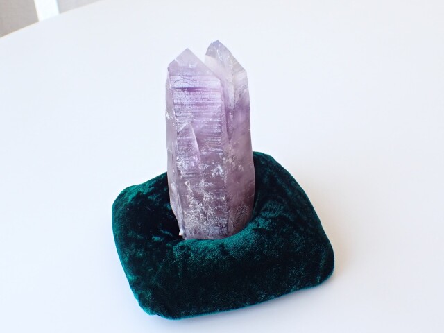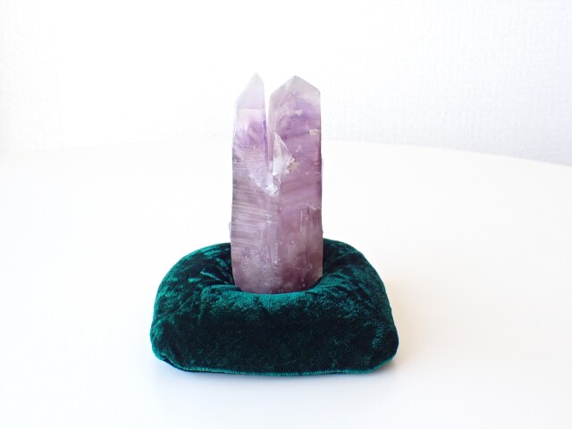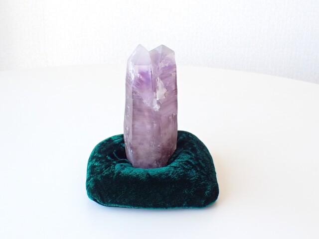 【商品詳細】 産地:ブルガリア産 ファントムアメジスト サイズ:約104mm×46mm×39.4mm 重量:266.7g ※サイズ・重量については多少前後する場合があります。 ※天然石の為厳正特有の凹凸、小傷、インクルージョン等ある場合がございます。 ※台座クッションが付属致します。 当店では初めてご紹介するブルガリア産のファントムアメジストになります。 何重かのファントムが見られる珍しいアメジストです。