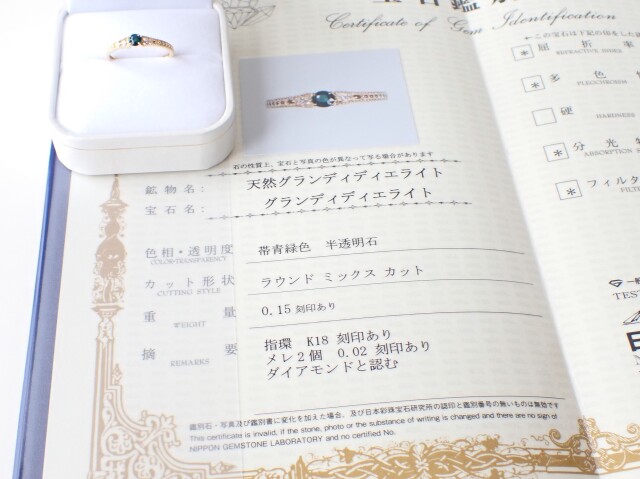 産地:マダガスカル グランディディエライト K18リング 宝石鑑別書付き