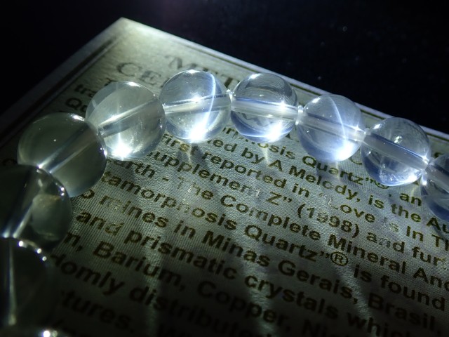 こちらは、A.メロディ女史の正規証明書付が付属するメタモルフォーシスクォーツです。約9年前、メロディ女史と親交のある方がビーズを作りたいということでメロディ女史より直接原石を譲っていただきビーズに加工したものです。その際にブレスレットに正規証明書を付属するということで発行していただいたものになります。メロディ女史より譲り受けた原石でビーズにしたものは恐らく他にはないものと思われます。その原石からは6mm、8mm、10mmの3サイズしか作っておりません。中にはスターの出る珠などもある場合がございます。品質とサイズも分けて出品致しました。A、AA、AAA、SA、SAupというグレードで全てのサイズが揃っているわけではございませんがどのグレードでもメタモルフォーシスクォーツの温かみが伝わる素晴らしいクリスタルかと思います。