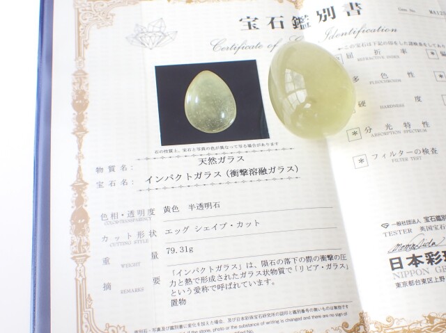 産地:エジプト リビアングラス エッグシェイプ 宝石鑑別書付き