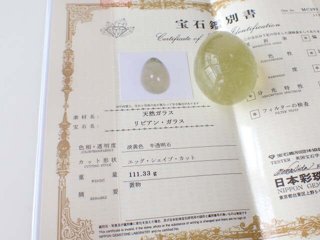 産地:エジプト リビアングラス エッグシェイプ 宝石鑑別書付き
