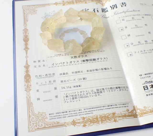 産地:エジプト リビアングラス 原石 ブレスレット 宝石鑑別書付き