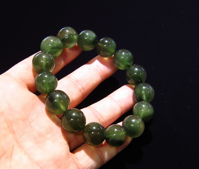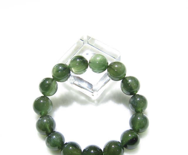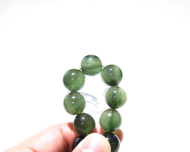 粒の中にはライトを当てるとキャッツアイが見られる粒もあり