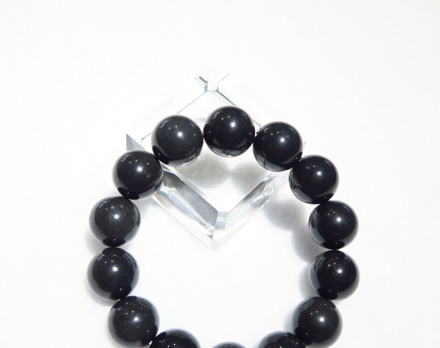 • AB1539 【限定入荷】 サヌカイト(讃岐岩) 14mm(14粒) ブレスレット