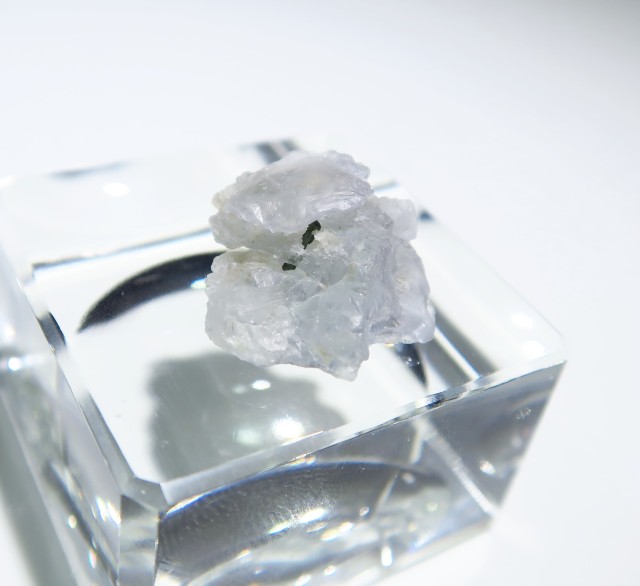 H&E社 ヘルデライトが入荷致しました。こちらは、グリーントルマリンの結晶がヘルデライトに包みこまれるかのようにオンしています。ヘルデライトのカラーは豊富で、無色・淡黄色・褐色・灰色などがありますが、こちらは薄っすらブルーグレーのようなカラーとなります。透明度の高いものは宝石カットが施されルースに加工されるなどとても稀少です。