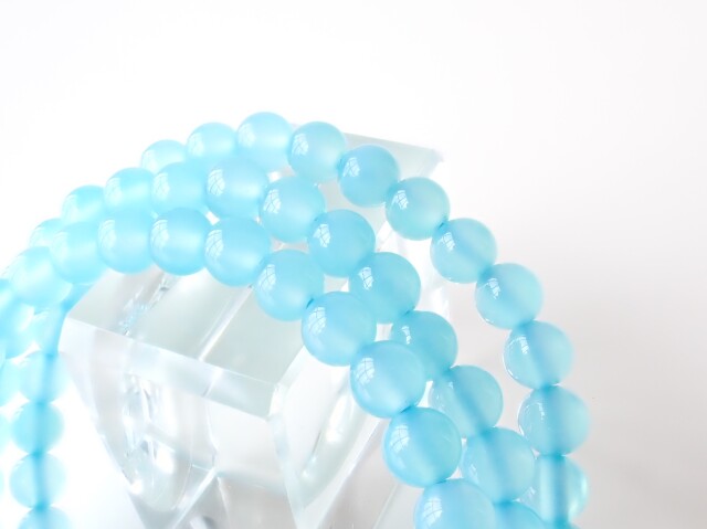 シーブルーカルセドニーは一般的に染色されたものですので、紫外線などによる退色もありますので予めご了承下さい。