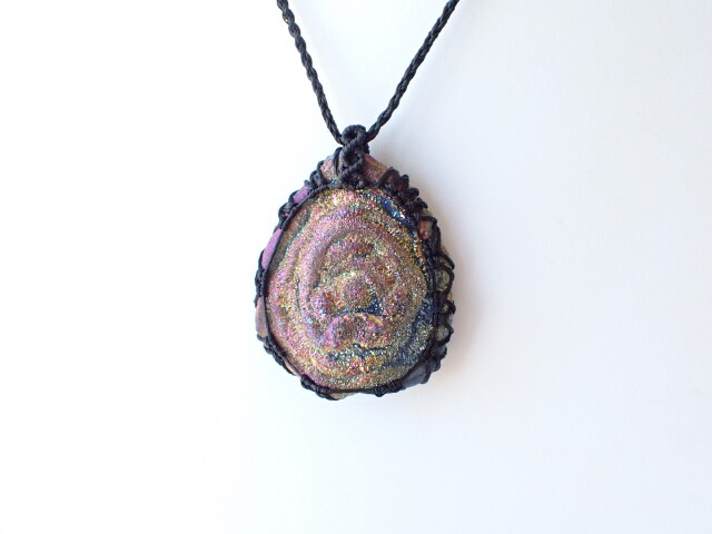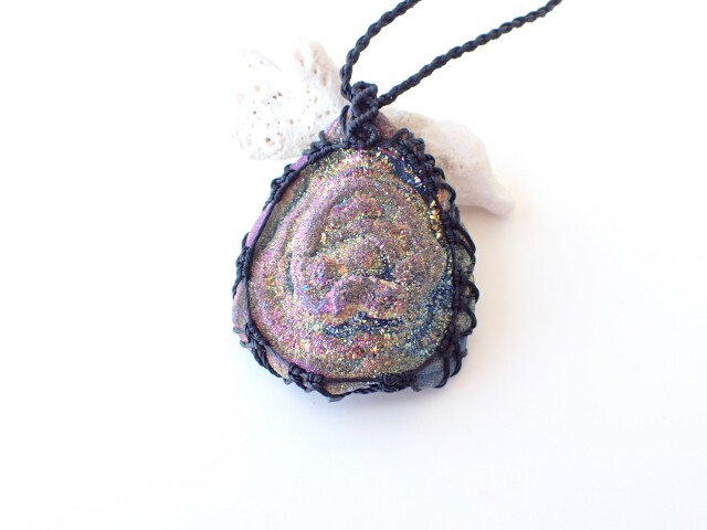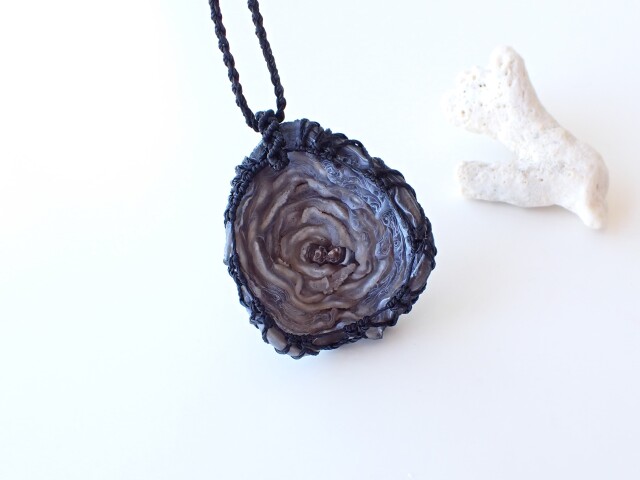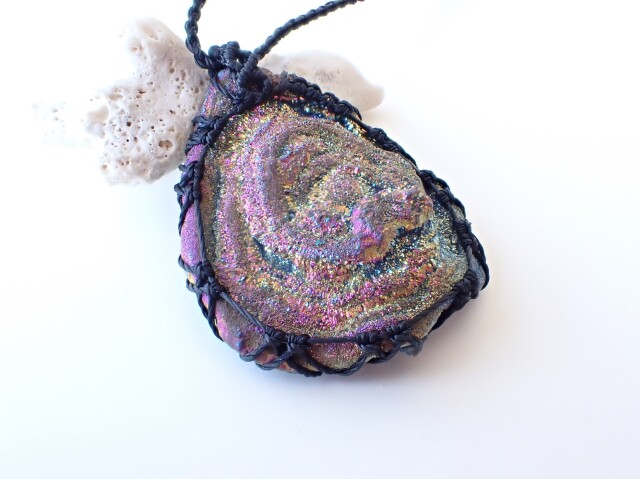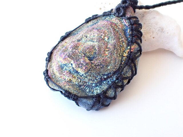 産地:ブラジル オーラ・ドゥルージーカルセドニー ペンダントネックレス(マクラメ編み)