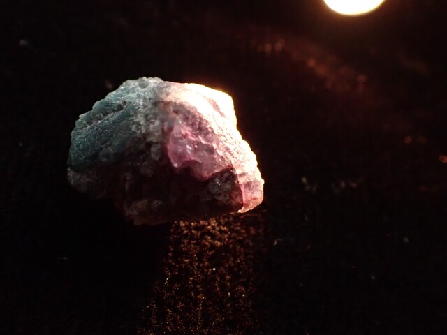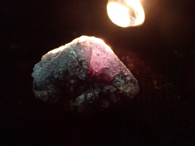 この鉱物は、 昼間に見たときは緑色だったはずなのに夜、ローソクの光の下で
