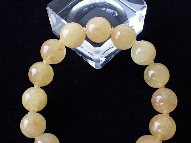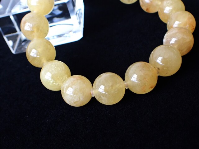 産地:タンザニア ゴールデンダンビュライト 約12mm×16粒(保護用シリコン付き)腕回り:約16cm