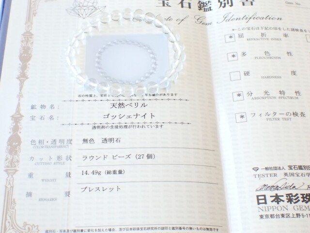 • AB4076 ゴッシェナイト(天然ベリル) 7mm ブレスレット ☆宝石鑑別書付き☆