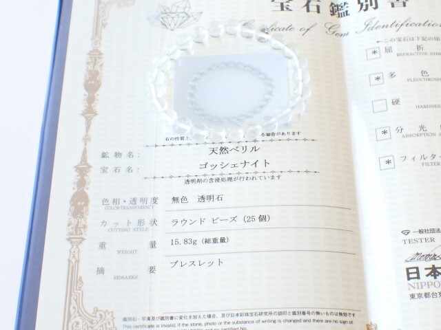 • AB4079 ゴッシェナイト(天然ベリル) 7.5mm~8mm ブレスレット ☆宝石鑑別書付き☆