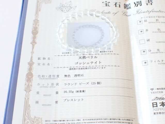 産地:ブラジル産 ゴッシェナイト(天然ベリル) ブレスレット 宝石鑑別書付き