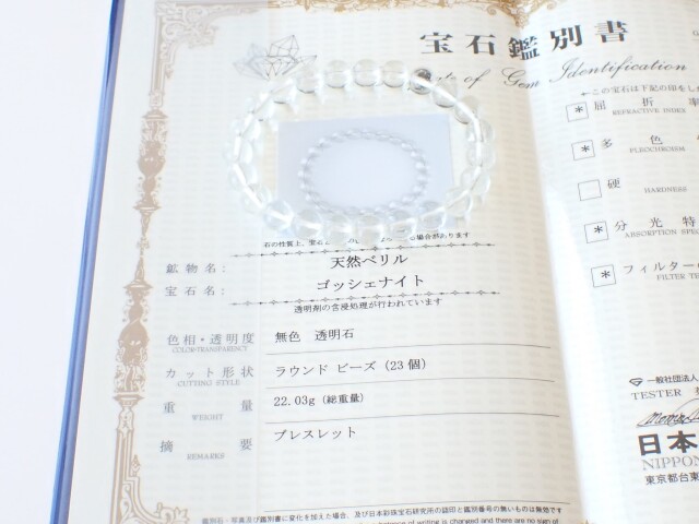 産地:ブラジル産 ゴッシェナイト(天然ベリル) ブレスレット 宝石鑑別書付き