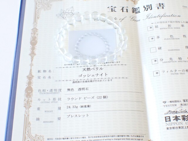 産地:ブラジル産 ゴッシェナイト(天然ベリル) ブレスレット 宝石鑑別書付き