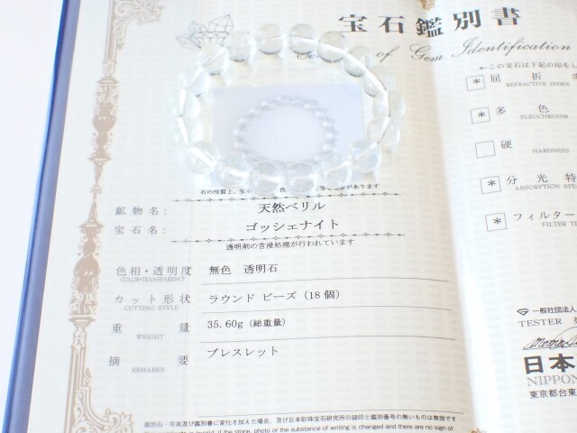 産地:ブラジル産 ゴッシェナイト(天然ベリル) ブレスレット 宝石鑑別書付き
