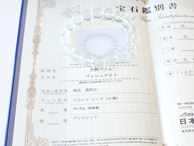 • AB4086 ゴッシェナイト(天然ベリル) 11mm ブレスレット ☆宝石鑑別書付き☆