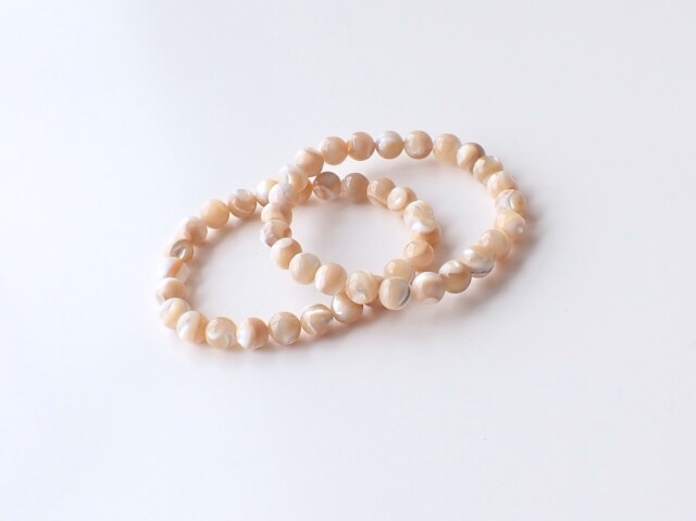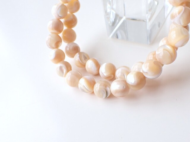 こちらは白蝶貝の母貝をビーズにしたものになります。
