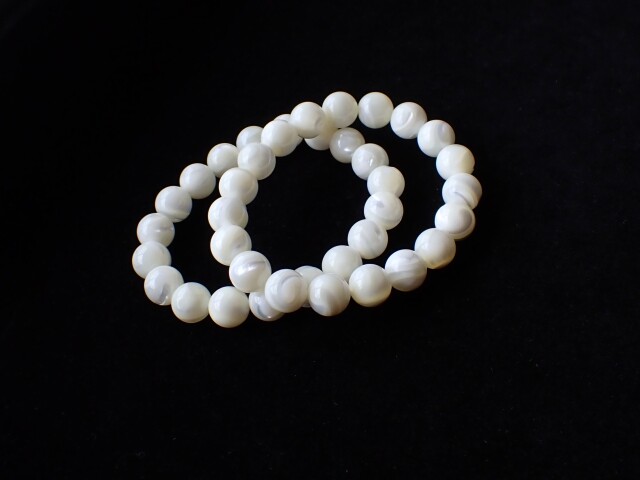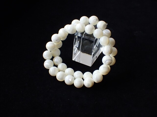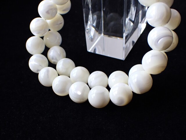 こちらは白蝶貝の母貝をビーズにしたものになります。