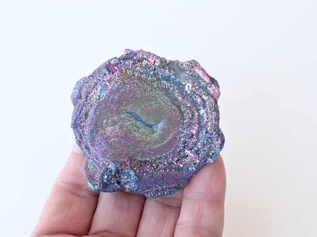 オーラ系の原石やビーズ、カービングは、高温で蒸発させた金属を