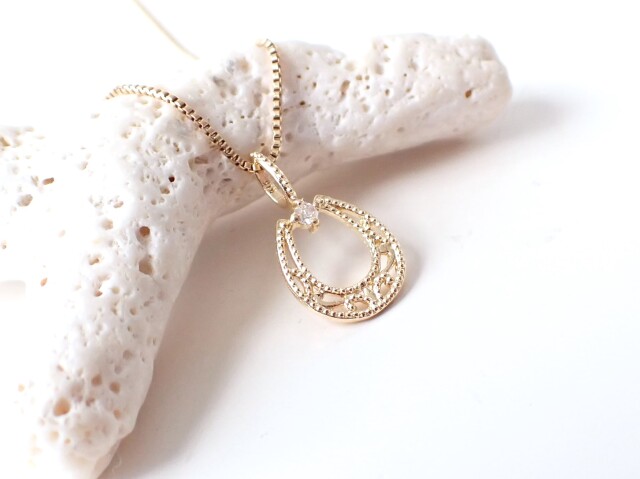 AB4146 ダイヤモンド付きホースシュー(馬蹄) K18 ペンダントトップ ☆各種セール・ポイント付与対象外☆