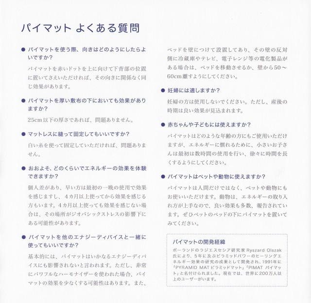 ・パイマットのエネルギー効果は休んでいる時あるいは寝ている時に起こります。