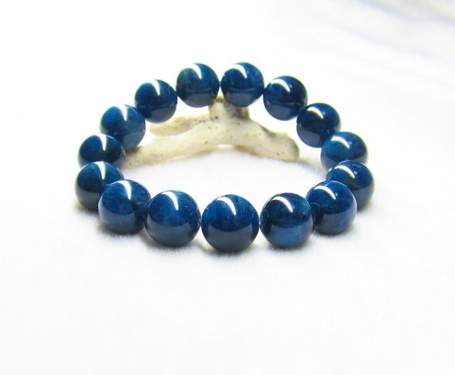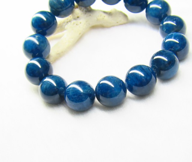 産地:マダガスカル産 ブルーアパタイトAAA 約14mm×15粒 腕回り:約16.5cm