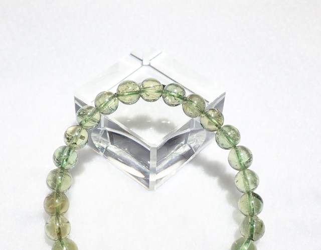 産地:マダガスカル産 グリーンアパタイト(ライトカラー)AAA 約8mm×26粒 腕回り:約17cm