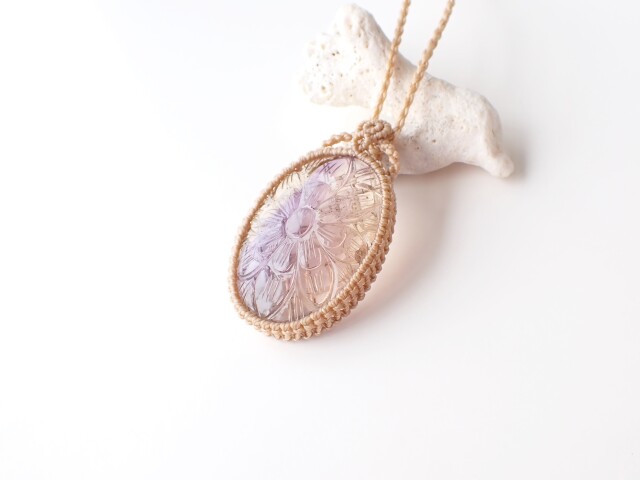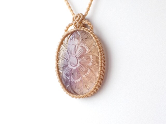 産地:ボリビア アメトリン ペンダントネックレス(マクラメ編み)