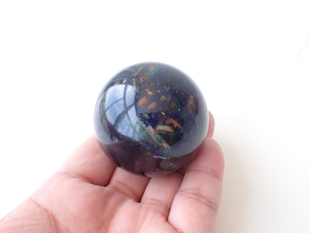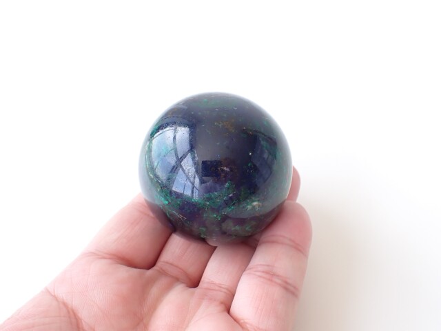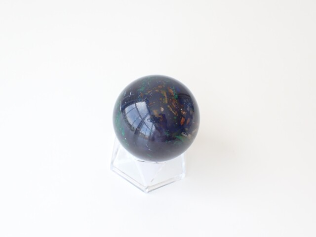 AG0066 ペルー産 アズロマラカイト スフィア(丸玉) 直径:53mm ☆台座付き☆