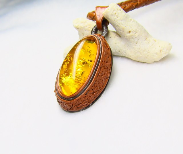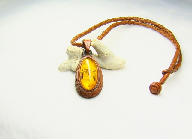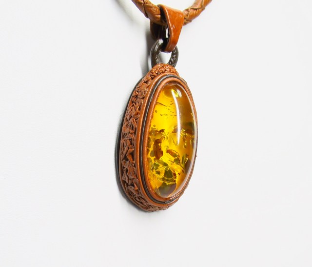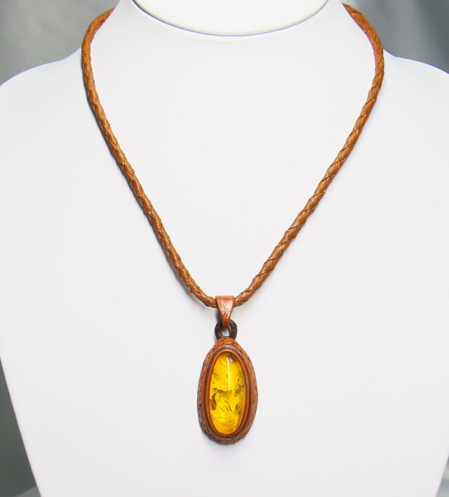 産地:リトアニア産 琥珀(アンバー) ペンダント(レザー)