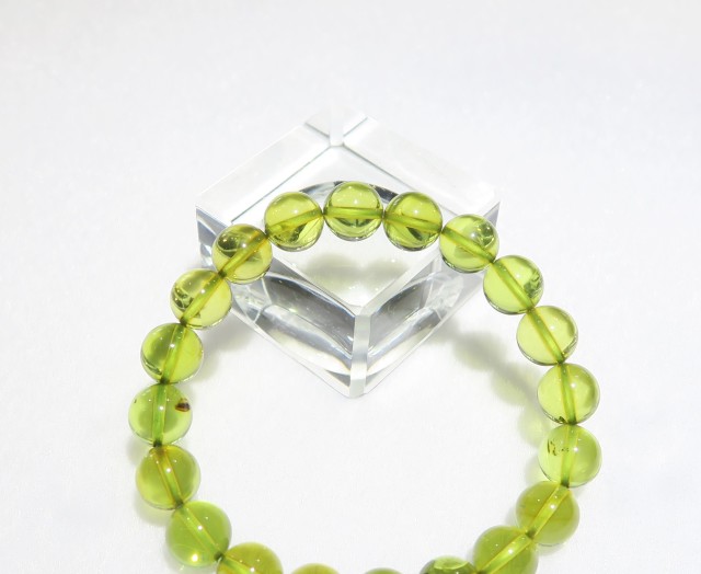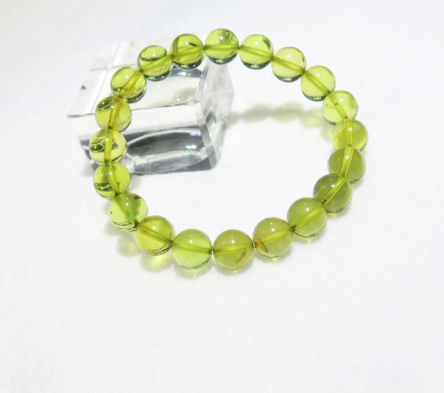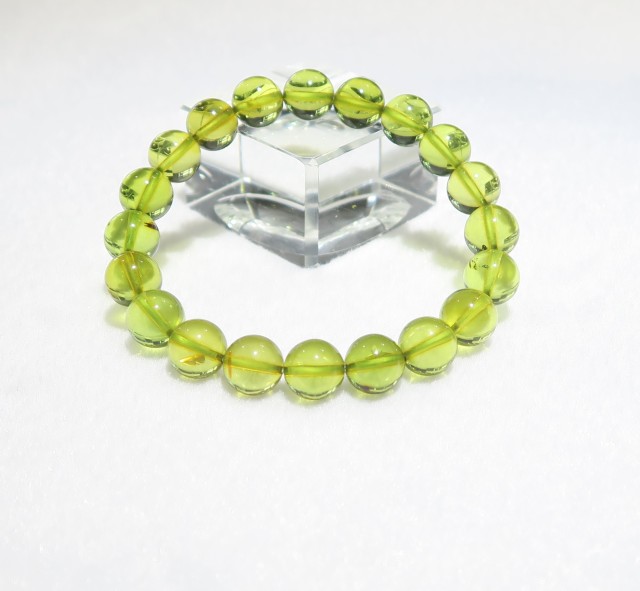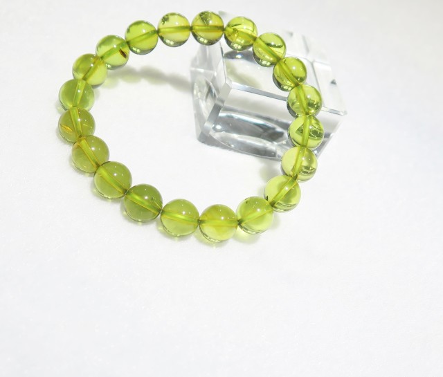 • ANB119 【美品】 リトアニア産 グリーンアンバー(琥珀) 10mm ブレスレット