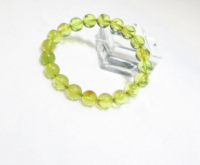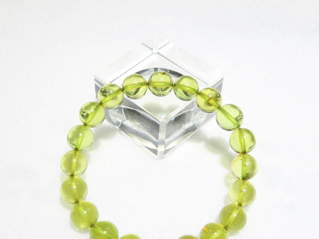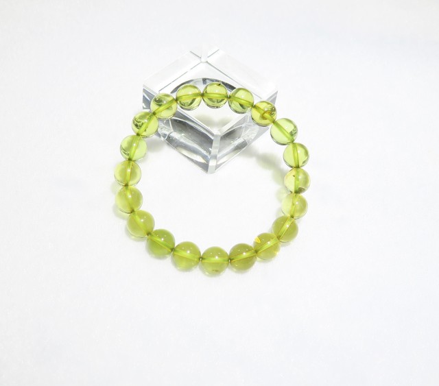• ANB122 【美品】 リトアニア産 グリーンアンバー(琥珀) 10mm ブレスレット