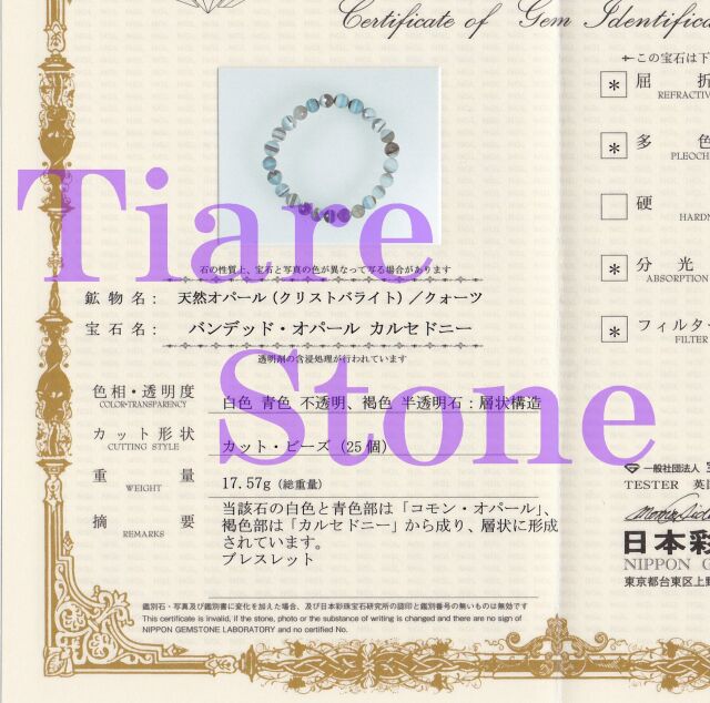 西インド ラジャスタン州にあるタール砂漠の鉱山で産出されたストーンになります。独特のバンデット(層状)模様が特徴でして、白、水色、ブラウンの3色が見られます。サンプルとして1点を鑑別機関に出しました。