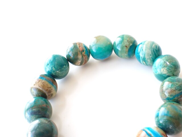 BM0052 ペルー産 ブルーオパール 14mm ブレスレット