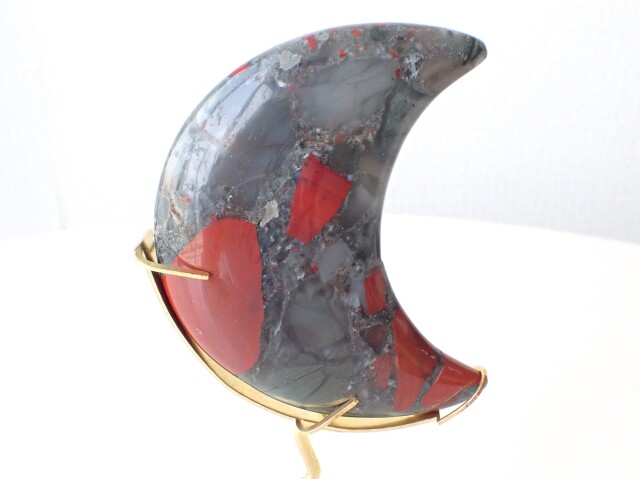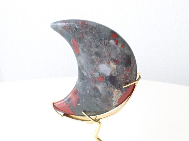BN0022 ブラッドストーン ムーン ☆専用台座付き☆