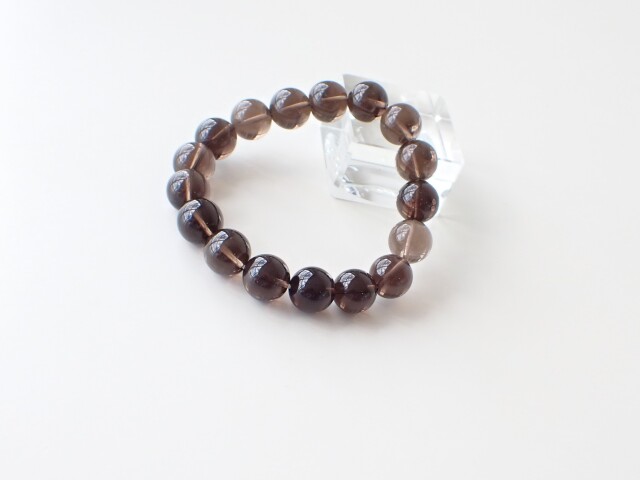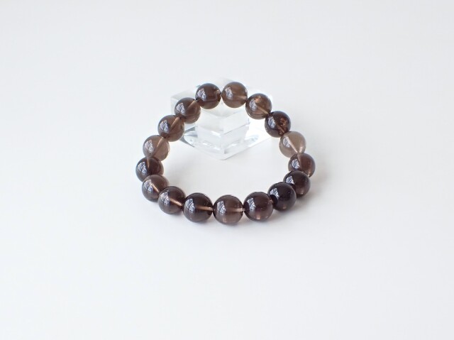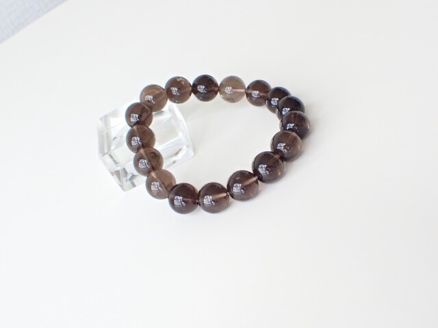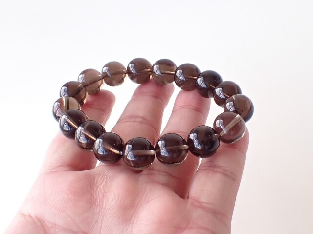 産地:ネパール ガウリシャンカール産 スモーキークォーツ 約13mm×17粒 腕回り:約18cm