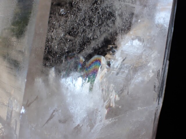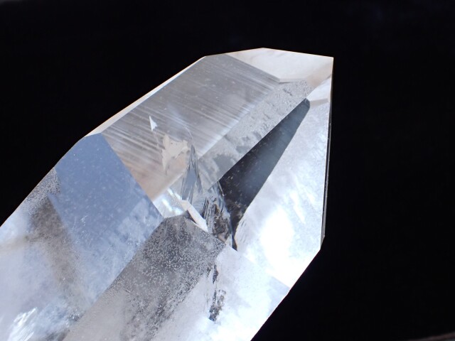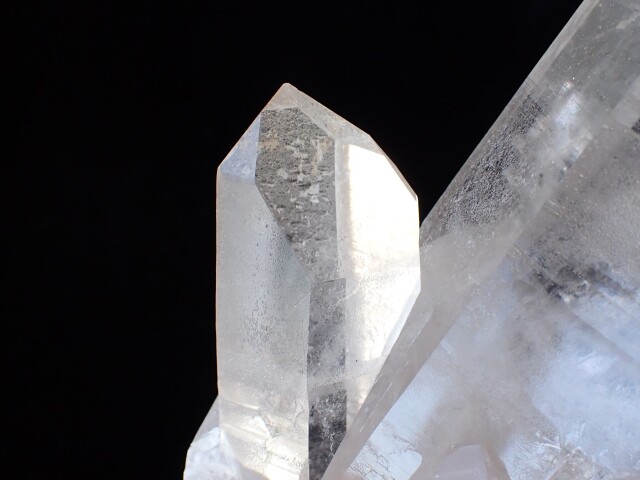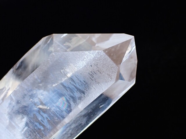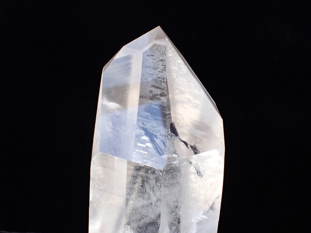 薄っすらとスモーキーな色合いで上部にかけて透明度が非常に高く錐面の照りもあり