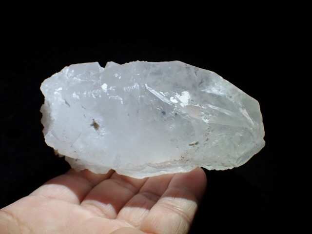 水晶で、氷柱を削ったような形をしています。表面はごつごつと凹凸が激しいですが