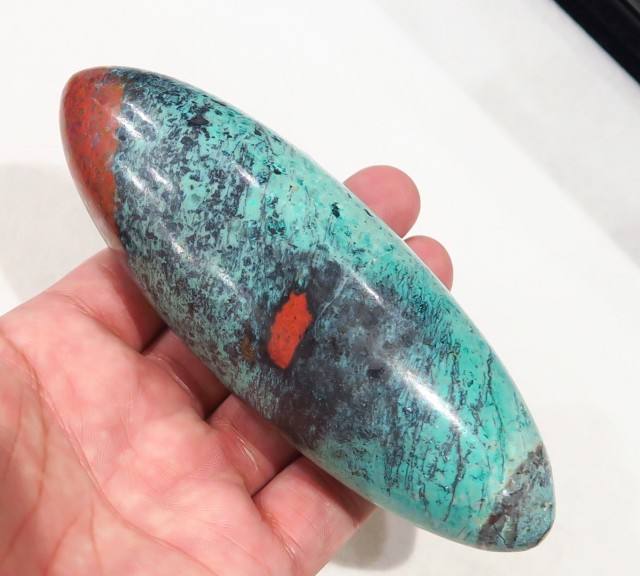 キュープライト(赤銅鉱)は赤褐色の銅が主成分となり、『クリソコラ』や『マラカイト』部分(薄青~緑色)もあります。キュープライトは、広い視野を持ち受け入れる受容性を高め仕事の成果を高めるだけでなく良好な対人関係も構築できるように促してくれると言われています。そして、その色合いから『情熱、勇気、愛』を象徴する石とも言われています。