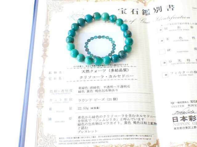 GD0122 ジェムシリカ(クリソコーラ・カルセドニー) 9mm~9.5mm ブレスレット ☆宝石鑑別書付き☆