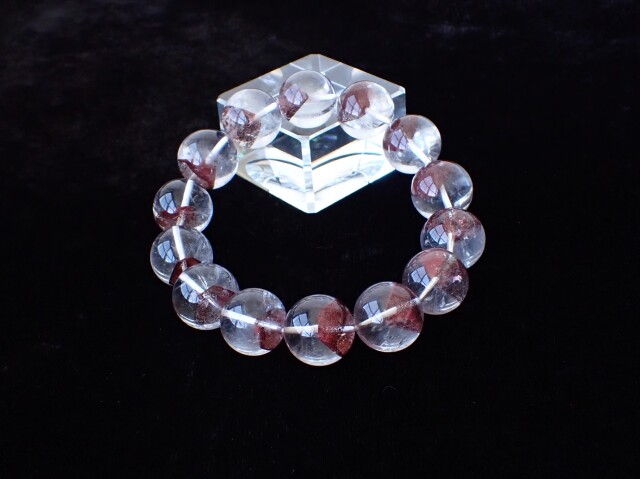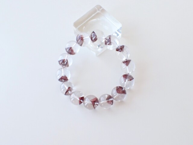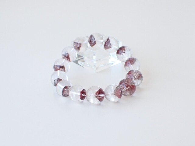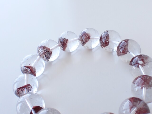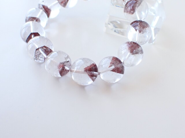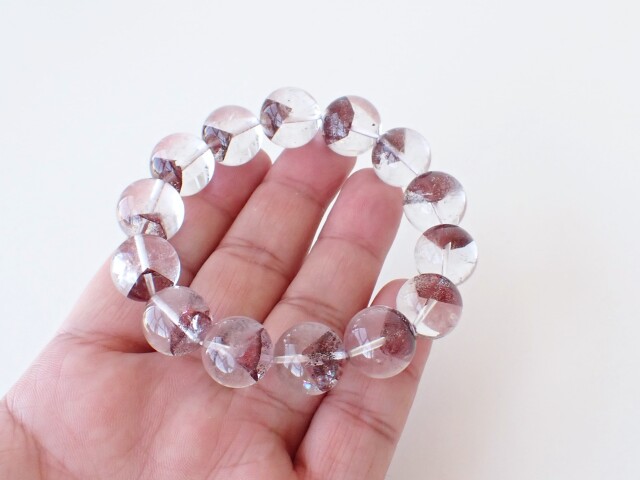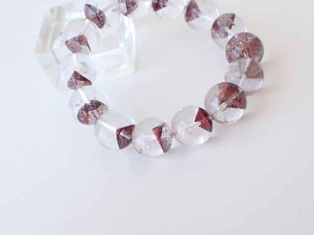 産地:マダガスカル産 レッドファントムクォーツ 約15mm×14粒 腕回り:約16.5cm