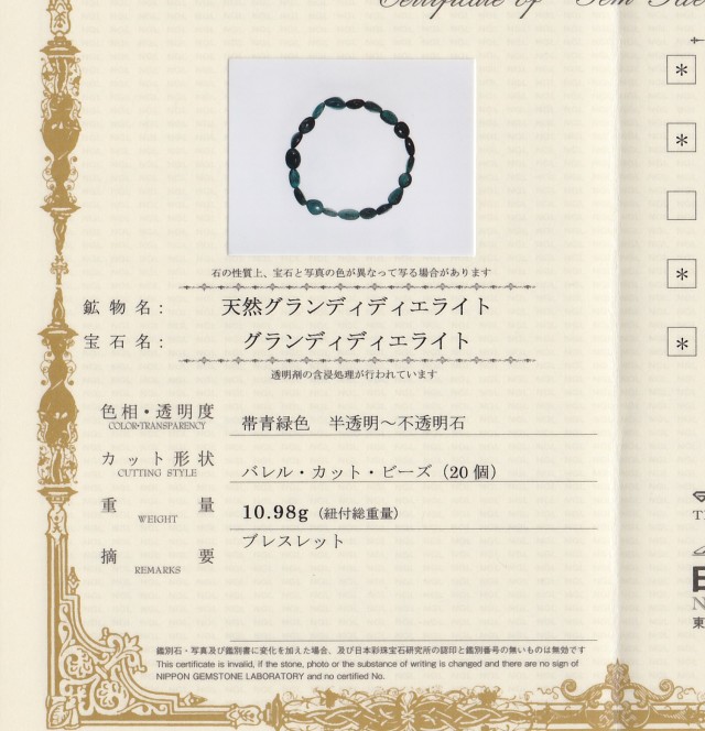 グランディディエライトのブレスレットが入荷致しました。個別に宝石鑑別書もとりましたのでご安心下さい。
