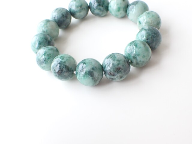 ※糸魚川翡翠は硬い部分や柔らかい部分がある為、磨きが難しく真円でない珠もございます。