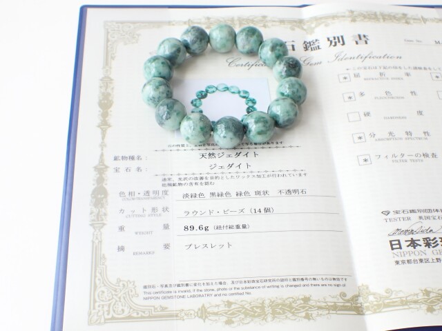 産地:新潟県 糸魚川市 小滝産 翡翠 ブレスレット 宝石鑑別書付き