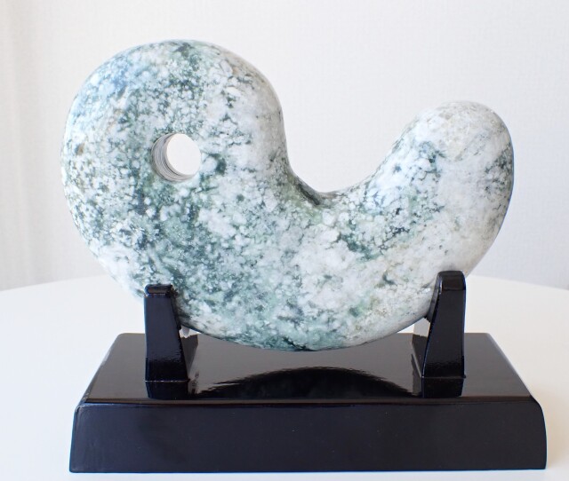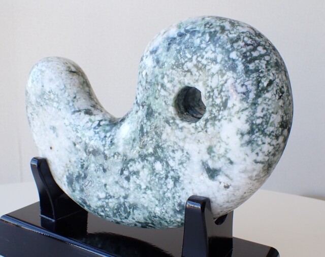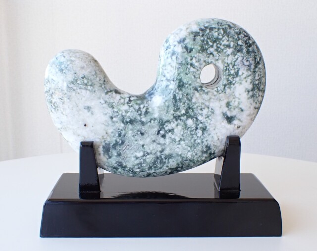 HC0350 【プレミアム】 新潟県 糸魚川 小滝産 翡翠 勾玉 2233g ☆木製台座付き☆